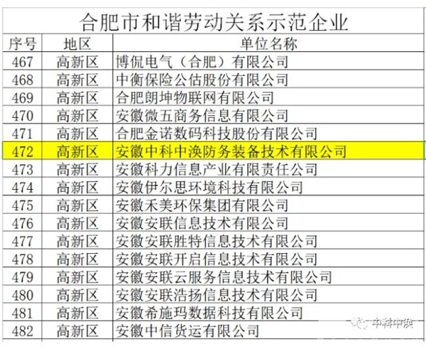 根据《合肥市和谐劳动关系单位评价认定办法》和《关于开展2020年度和谐劳动关系单位评价认定工作的通知》,市人社局、总工会、企联、工商联对合肥市和谐劳动关系示范企业进行了评定并予以公示,中科中涣凭借自身规范有序、公正合理、互利共赢、和谐稳定的新型现代劳动关系,高分获评“和谐劳动关系示范企业”。