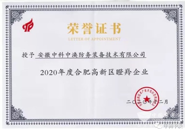 中科中涣荣获2020年度合肥高新区瞪羚企业,“瞪羚企业”作为高成长企业的代表,具有成长速度快、创新能力强、专业领域新、发展潜力大的特征。