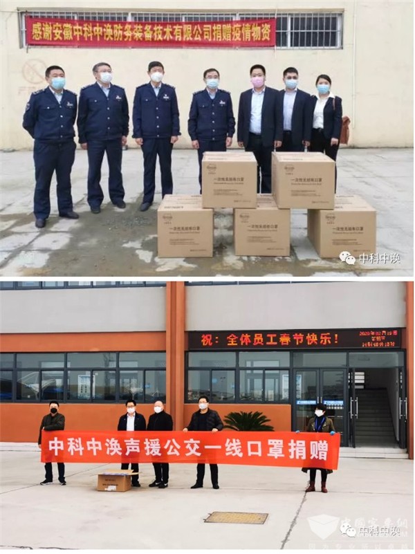2020年初,面对防疫物资紧缺的突出问题,中科中涣在做好自身企业疫情防护的同时,排除万难紧急寻找防疫物资-医用口罩采购渠道。在采购到物资后,第一时间捐到医院、公交公司、政府部门等抗疫一线,用实际行动为战“疫”贡献绵薄之力。在全民抗击疫情的攻坚时刻,中科中涣不仅为防疫贡献技术智慧,同时也重视社会公益活动,承担社会责任。