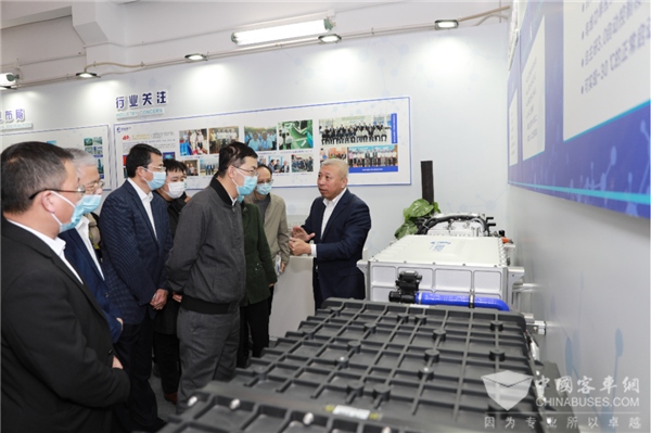 到访领导一行首先参观了搭载氢蓝时代氢燃料电池系统的城市公交车和重载渣土车。氢蓝时代董事长金晓辉详细介绍了氢燃料电池汽车的动力原理以及与纯电动车的比较优势。针对市领导提到的“燃料电池车启动慢”的传统印象,氢蓝时代副总裁、研发中心主任曹桂军博士说,随着技术的不断升级,现在的氢燃料电池汽车启动已与电动车没有区别。