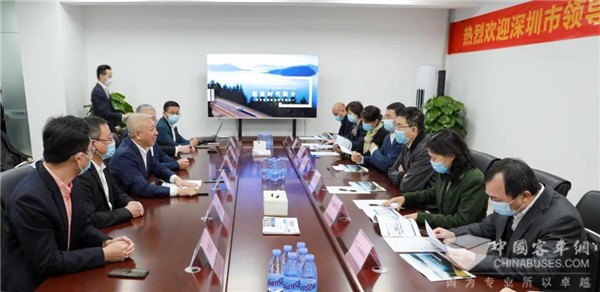 2021年1月18日下午,深圳市人民政府党组成员、副市长艾学峰同志,市政府副秘书长吴优同志等市领导率市发展改革委、科技创新委、交通运输局、住房与建设局、市创新中心等市直部门主要负责同志,在龙华区副区长陈建民同志、区属各部门以及辖区福城街道办相关同志的陪同下,莅临深圳市氢蓝时代龙华产品测试中心调研。
