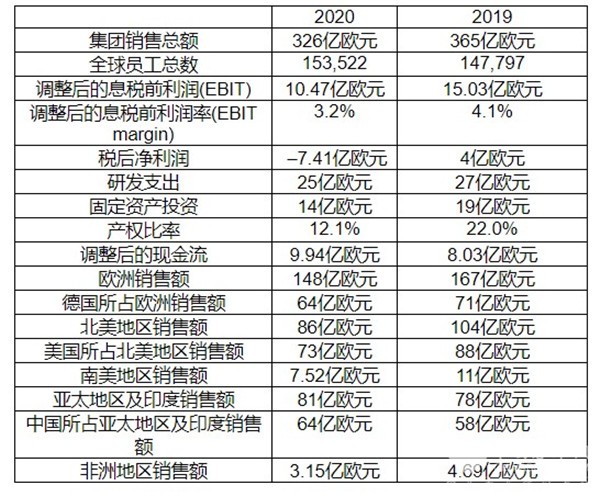 与此同时,2020年新冠肺炎疫情的突发对采埃孚的业绩造成了一些影响,集团销售额为326亿欧元,相比去年的销售额降低11%。调整后的息税前利润(EBIT)为10亿欧元(2019年:15亿欧元)。调整后的息税前利润率(EBIT margin)为3.2%(2019年:4.1%)。扣除税收后的净利润为-7.41亿欧元。