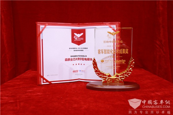 从柴油动力到纯电驱动、从数据分析到车辆诊断、从人机交互到智能驾驶……技术的发展与迭代无疑为客车业带来了崭新的发展机遇。影响中国客车业年度盘点活动中,森鹏全芯片数字配电模块因“智能化匹配客车技术发展”脱颖而出,荣获“客车智能化技术成果”奖项。