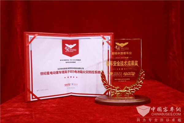 “客车安全技术成果奖”:世纪星电动客车锂离子动力电池箱火灾防控系统