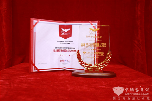 “客车技术创新应用成果奖”——世纪星客舱固定灭火系统