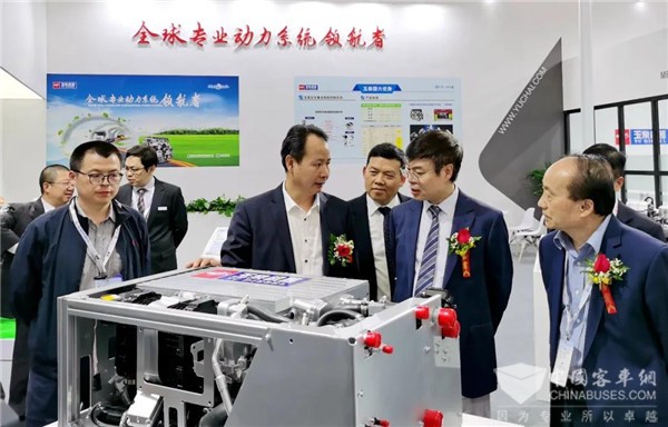 本次展会上,玉柴展出了新能源动力家族的3款产品:燃料电池系统、全球首款eCVT功率分流型混合动力总成和集成发电式发动机动力总成。