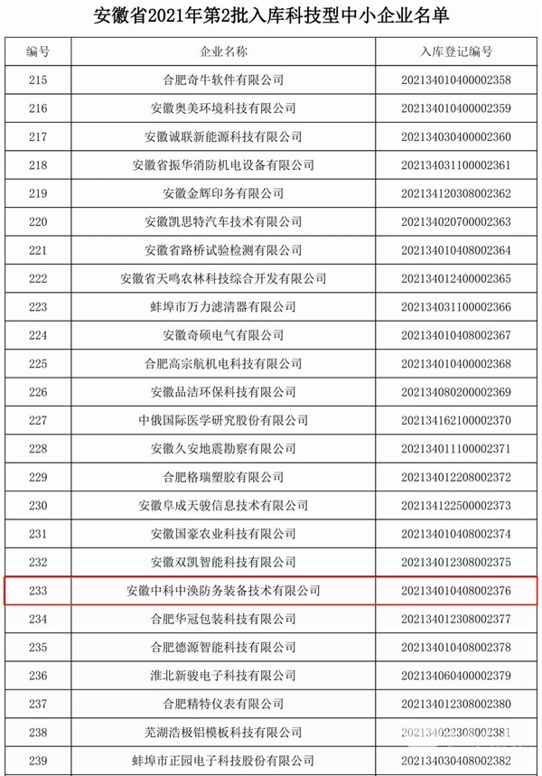 根据《科技型中小企业评价办法》和《科技型中小企业评价办法工作指引(试行)》要求,我省2021年第二批2835家拟入库科技型中小企业已公示通过,安徽中科中涣防务装备技术有限公司位列其中,而这也是中科中涣在科技领域的又一次飞跃。