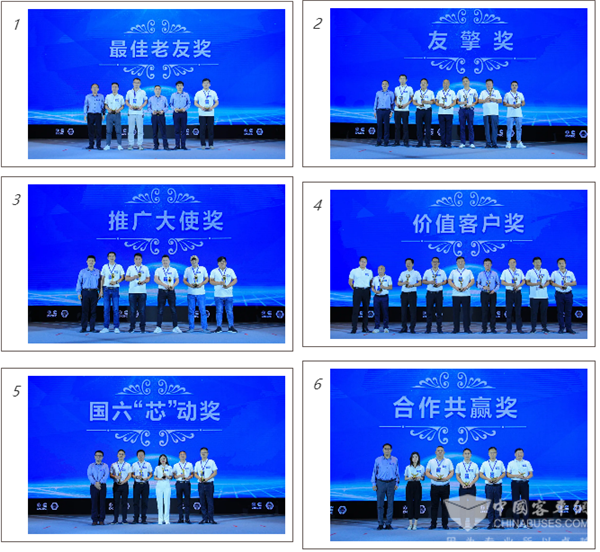 会议现场,为答谢东风康明斯老友汇会员对东风康明斯一直以来的支持与信赖,东风康明斯还举行了隆重的颁奖环节,分别颁发了友擎奖、推广大使奖、国六“芯”动奖、价值客户奖、合作共赢奖、最佳老友奖。