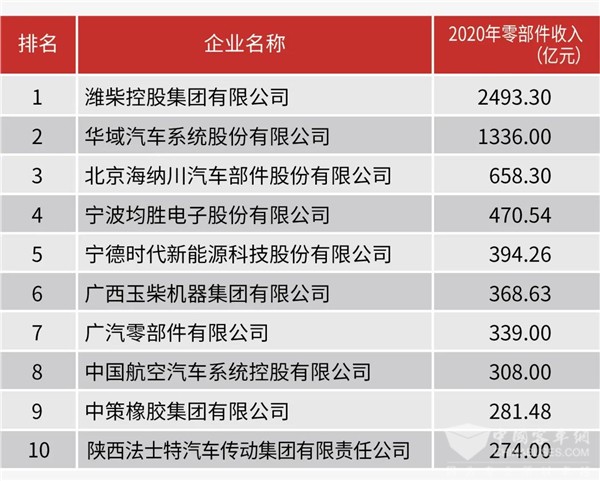 2021中国汽车零部件企业百强(前10位)