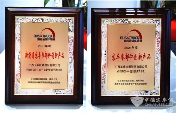 期间,YCK09和eCVT功率分流型混合动力总成分别获得展览会组委会颁发的“2021年度客车零部件创新产品奖”及“2021年度新能源客车零部件创新产品”荣誉,一度聚焦盛会目光。