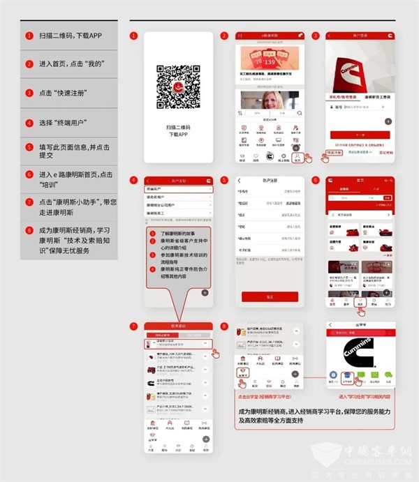 为提升康明斯发动机相关服务技术能力,康明斯还搭建了专属的学习平台,欢迎扫描二维码下载“e路康明斯”,一起学习技术知识,打造服务专家!