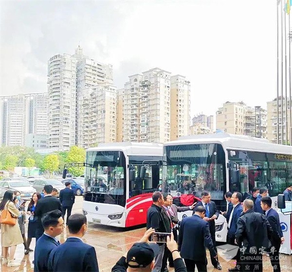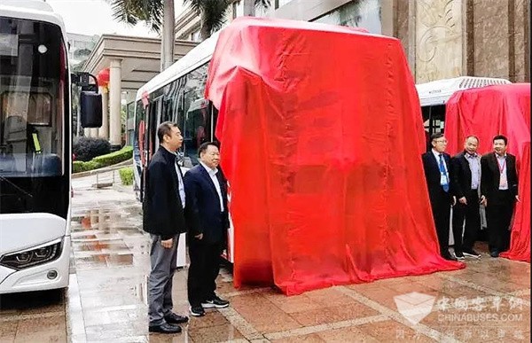 与此同时,发布会邀请了出席会议的自治区交通运输厅、梧州市交通局以及广西公交分会等相关领导共同为本次上市发布进行首发揭幕。