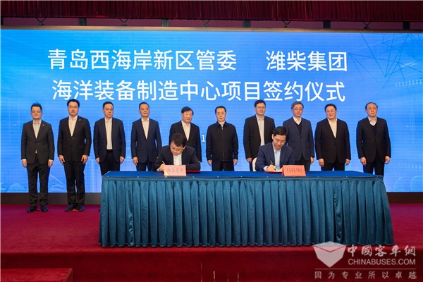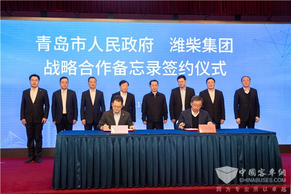 2021年12月31日上午8点,青岛市人民政府与潍柴集团签署战略合作备忘录,并就潍柴动力全球未来科技研发中心、潍柴动力(青岛)科技孵化中心、潍柴(青岛)海洋装备制造中心等项目签订一揽子战略合作协议。山东省委常委、青岛市委书记陆治原,青岛市委副书记、市长赵豪志,山东重工集团党委书记、董事长,潍柴集团董事长谭旭光出席活动并见证签约。