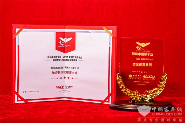 微宏新型钛酸锂电池荣获2021-2022年度“中国客车行业杰出运营案例奖”