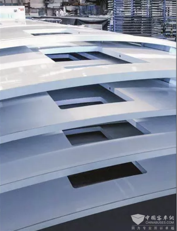 轻量化是客车行业发展的方向之一,复合材料顶盖比钢骨架蒙皮式顶盖减重50%,比铝合金顶盖减重25%,同时具备比强度高、比刚度高、结构稳定性好、承载能力高、耐疲劳、抗振动、隔音、隔热等优点,尤其适合顶置电池的公交车。