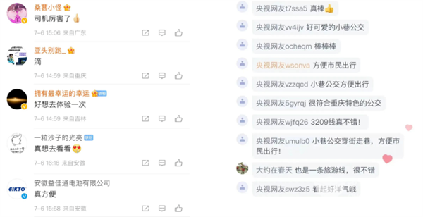 央视记者评价:“小巷公交”的运行极大便利了市民和游客的出行,对于长期生活在重庆的市民尤其是老年人来说,在家门口就能乘坐公交,省去了每天“爬坡过坎”的烦恼,出行变得更加方便;对于游客来说,乘坐小型公交车打卡“坡坡坎坎”,也是一种别样的“山城”体验。