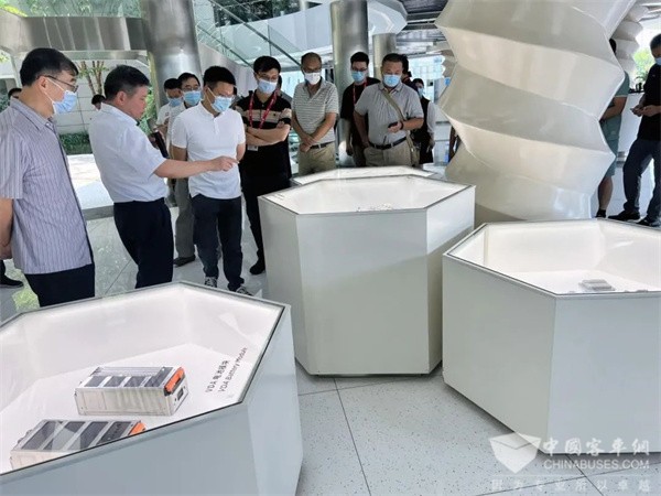 在参观微宏公司展厅时,专家们仔细聆听了微宏公司代表的介绍。近年来,湖州作为国家新能源推广应用试点城市,加大对新能源汽车产业发展和推广应用的扶持力度。微宏公司坚持”快充电、长寿命、高安全”的动力电池研发理念,在电池研发生产方面取得了丰硕成果,几代快充电池产品陆续在商用车、物流运输、矿车、储能等领域投入使用,并广受好评。