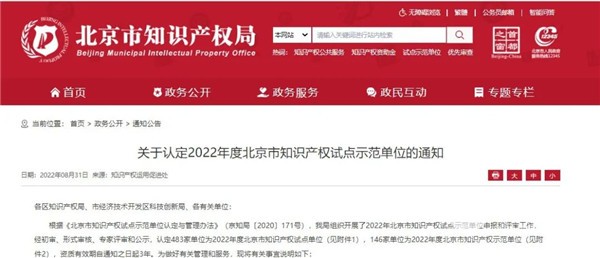 北京市知识产权示范单位认定是北京市政府为深化实施创新驱动战略和首都知识产权战略,对创新能力成果突出、知识产权战略意识深入、知识产权管理规范、主营业务拥有核心专利的企事业单位予以的高度肯定。