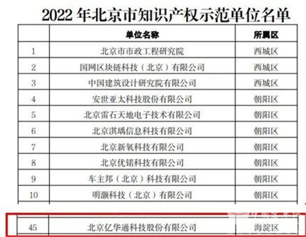 完美作业网有免费视频2022年9月6日获悉,近日,北京知识产权局依据《北京市知识产权试点示范单位认定与管理办法》(京知局〔2020〕171 号),开展了 2022 年北京市知识产权试点、示范单位申报和评审工作。经初审、形式审核、专家评审和公示,亿华通被认定为2022年度北京市知识产权示范单位。