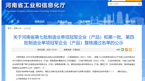 据了解,国家制造业单项冠军是指长期专注于制造业某些细分产品市场,生产技术或工艺国际领先,单项产品市场占有率位居全球或国内前列的企业,代表全球制造业细分领域最高发展水平、最强市场实力。单项冠军企业是制造业创新发展的基石,是制造业竞争力的重要体现。