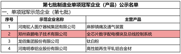 自2016年国家工信部发布《制造业单项冠军企业培育提升专项行动实施方案》以来,共组织了七批制造业单项冠军企业(产品)的评审。国家制造业单项冠军评审标准严苛,河南省仅有23家企业入选,其中郑州市只有8家企业,而森鹏电子是中国商用车电控和信息系统领域唯一一家入选国家制造业单项冠军的企业!