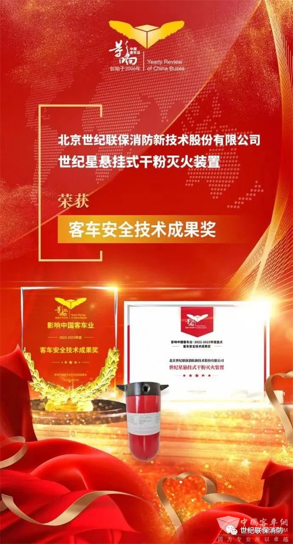 2023年2月22日,第17届影响客车业年度盘点颁奖典礼在历史文化名城---南京如期举行。经过专家评定、客户投票、网络评议等多个环节,北京世纪星成功蝉联“客车安全技术成果奖”和“客车技术创新应用成果奖”两项大奖,再次展示世纪联保在客车消防安全领域的硬实力。