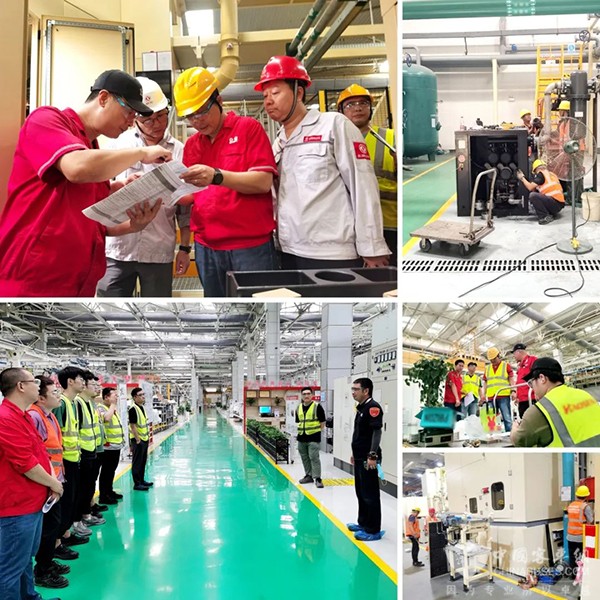 “六龙鹜不息,三伏起炎阳”。八月盛夏,烈日炎炎,室外温度接近40℃。为确保公司生产设备安全、无故障运行,高温假期间,东风康明斯相关职能部门负责人及检修人员利用假期休息时间,加班加点,全面检修生产设备,如期完成设备检修任务。