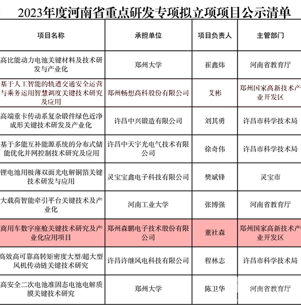 数字座舱广受用户好评 森鹏电子获河南省重点研发专项支持