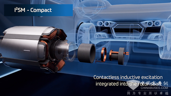 采埃孚目前已开发出一款无需磁性材料的驱动电机。与当今单独励磁同步电机的无磁概念不同,采埃孚内转子式感应励磁同步电机(I2SM)可通过转子轴内感应励磁机传递磁场能量,在确保电机独具紧凑性的同时实现最大功率和扭矩密度。