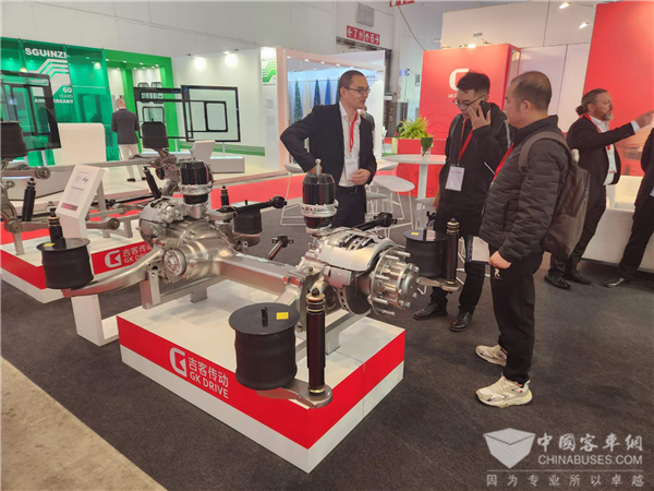 中型城市客车也逐渐低地板化。吉客此次展出了市场技术领先的19.5”规格的驱动桥系统BRA101DC90。这是该产品的首次对外展出,引起观众们的极大兴趣。