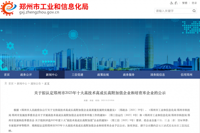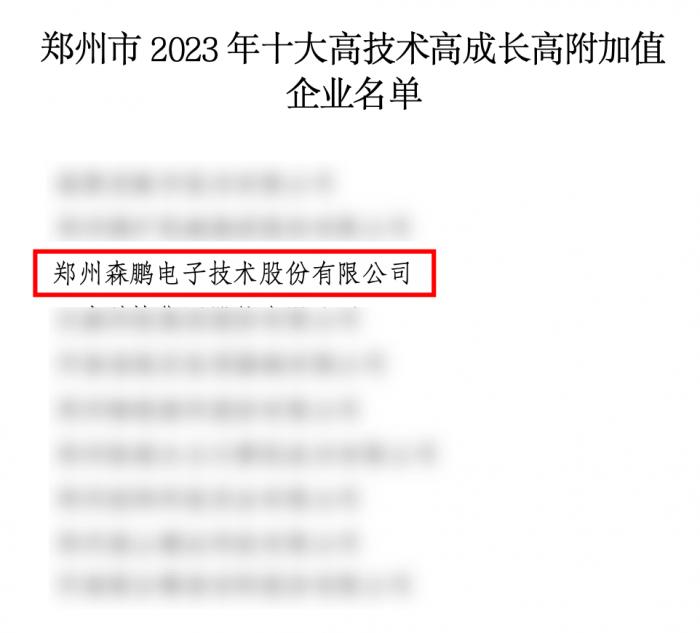 完美作业网有免费视频2023年10月30日获悉,郑州市工业和信息化局公布了《郑州市2023年十大高技术高成长高附加值企业名单》,郑州森鹏电子技术股份有限公司从近千个申报企业中脱颖而出,荣耀入选!
