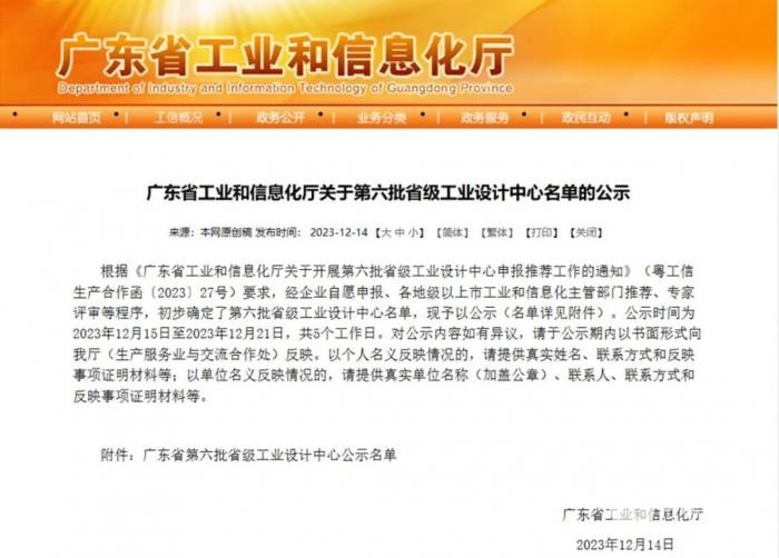 2023年12月14日,广东省工业和信息化厅公布了广东省第六批省级工业设计中心名单,通达电气工业设计中心成功认定为省级工业设计中心!