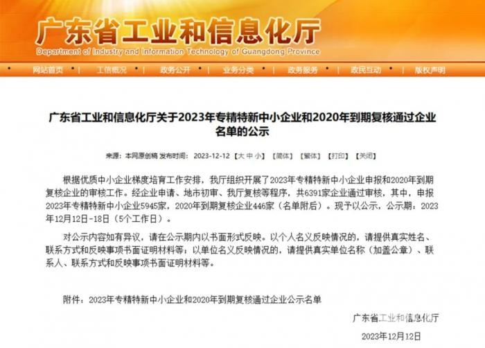广东省专精特新中小企业名单发布 通达电气旗下这家公司入选