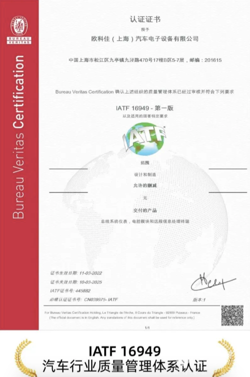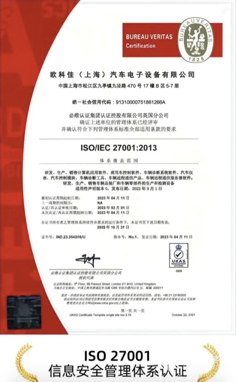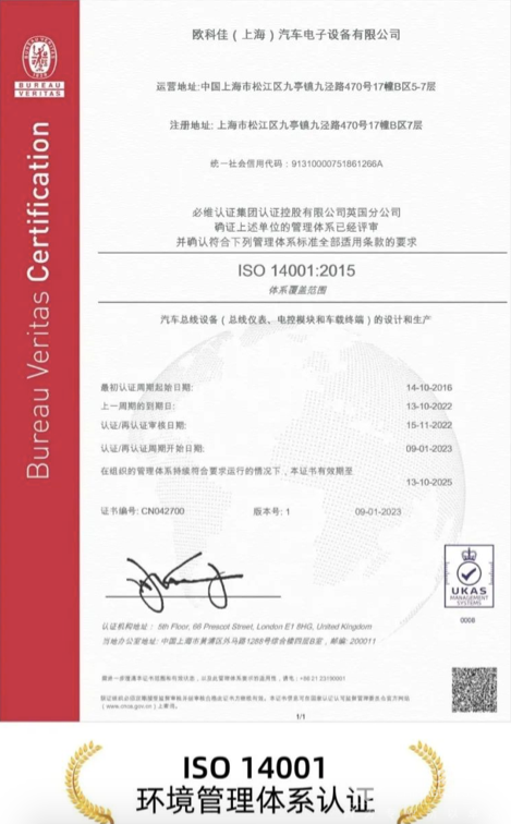 作为车载电子系统集成供应商和汽车检测与诊断专家,欧科佳中国自2003年成立以来,始终密切关注目标市场的合规要求,不断精进管理体系。