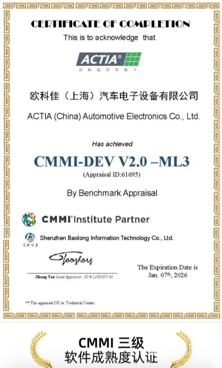 经过多年的努力与积累,公司荣获了ISO 9001质量管理体系、IATF 16949汽车行业质量管理体系、ISO 14001环境管理体系、ISO 27001信息安全管理体系以及CMMI三级软件成熟度等多项国际国内认证。