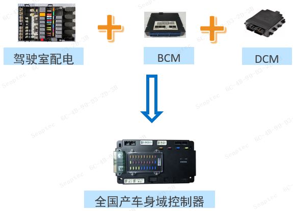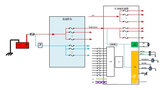 3、高度集成化:集成驾驶室配电、BCM(车身控制器)、DCM(门窗控制器)功能,并集成遥控钥匙接收器。