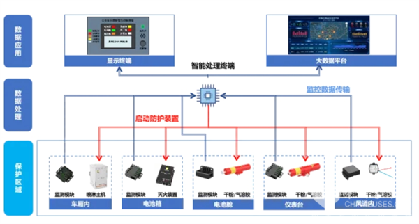 中科中涣自主研发的整车火情预警及防护系统,可通过安装在隐蔽区域的监测模块采集CO、温度等多种参数,对车辆进行全车实时监测,并通过智能处理终端将报警信息和自检信息上传系统,可以及时发现潜在安全隐患,及时采取措施,有效降低公交车火灾发生的概率。