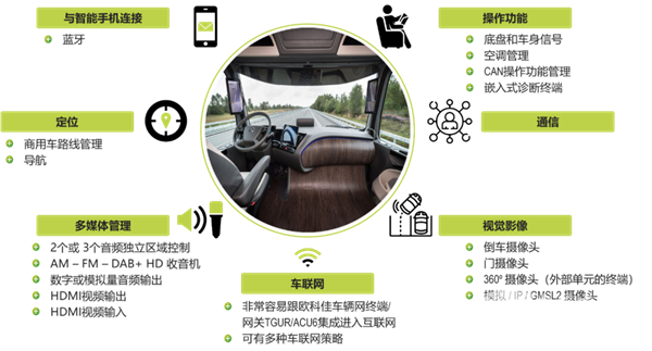 作为欧科佳最新研发的智慧结晶,ACTIVI数字座舱不仅能为驾驶员和乘客带来前所未有的智能、便捷体验,而且还可通过支持多种车联网策略,为用户构建全面联网、集中控制和高效沟通的商用车生态系统。这一创新成果将有力推动商用车行业的数智化转型,引领行业迈入全新的智能化时代。