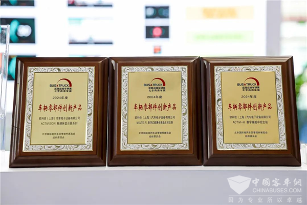 其中,欧科佳新品——MULTIC FL悬浮式超薄全液晶主控仪表和ACTIVISION触摸屏显示器系列,与ACTIVI数字座舱主机还在展会中脱颖而出,共同荣获了“2024年道路运输车辆展车辆零部件创新产品”奖项,欧科佳技术实力和产品创新能力再次得到认可。