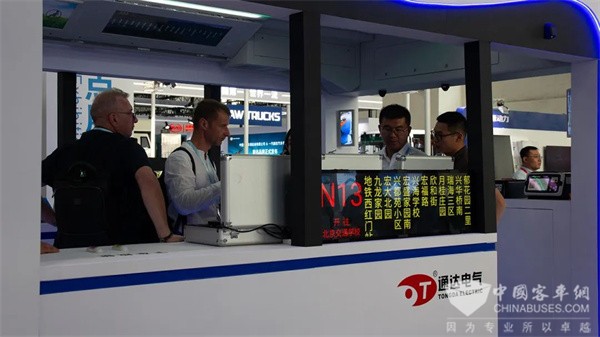 此次展会,通达电气展出的城市智慧交通管理云平台、车载智能系列、公交多媒体信息发布系列、车载部件系列等产品,也吸引了不少行业观展人员、业内专家的关注及咨询,工作人员为前来咨询的人员详细介绍展品及其性能与优势,根据不同使用场景的需求,为客户推介相应的产品以及专业的整体解决方案。