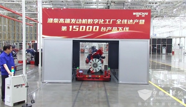 2024年6月12日上午10:40,一台披红挂彩的发动机在潍柴员工热烈的掌声中缓缓走下生产线。潍柴集团董事长谭旭光宣布,潍柴高端发动机数字化工厂全线达产,第15000台发动机产品下线。