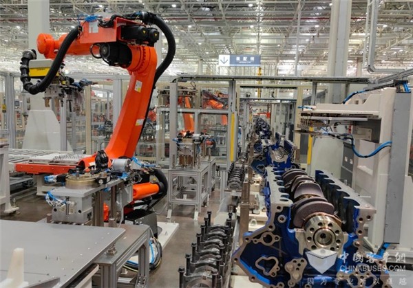 空中是一排排铮亮的风水气电管线,地上是跑来跑去的AGV小车,生产线上,桔红色的机器人围着发动机忙来忙去,“蓝工装”的身影却不好找寻。6月12日上午,记者来到潍柴全新一代发动机数字化产业园,感到这里整洁、现代、高端,令人耳目一新。