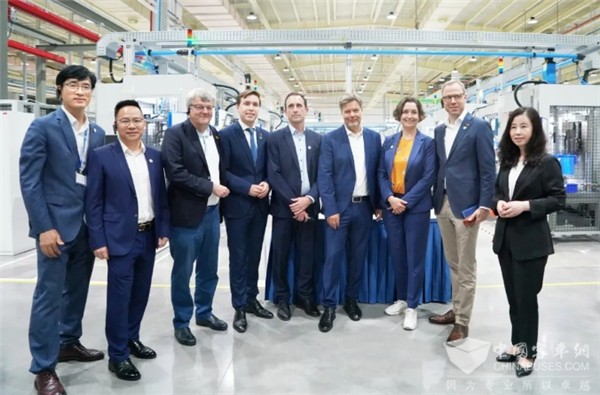 在采埃孚集团执行副总裁、中国区总裁、亚太区运营总裁汪润怡,采埃孚电驱传动技术事业部亚太区高级副总裁马迪莫(Timo Maisel),采埃孚电驱动技术(杭州)有限公司总经理陈伟林的陪同下,哈贝克一行参观了杭州工厂电机定子、转子以及电驱动桥等创新产品的生产线,并共同讨论了采埃孚在可持续发展方面的技术优势和创新成果。