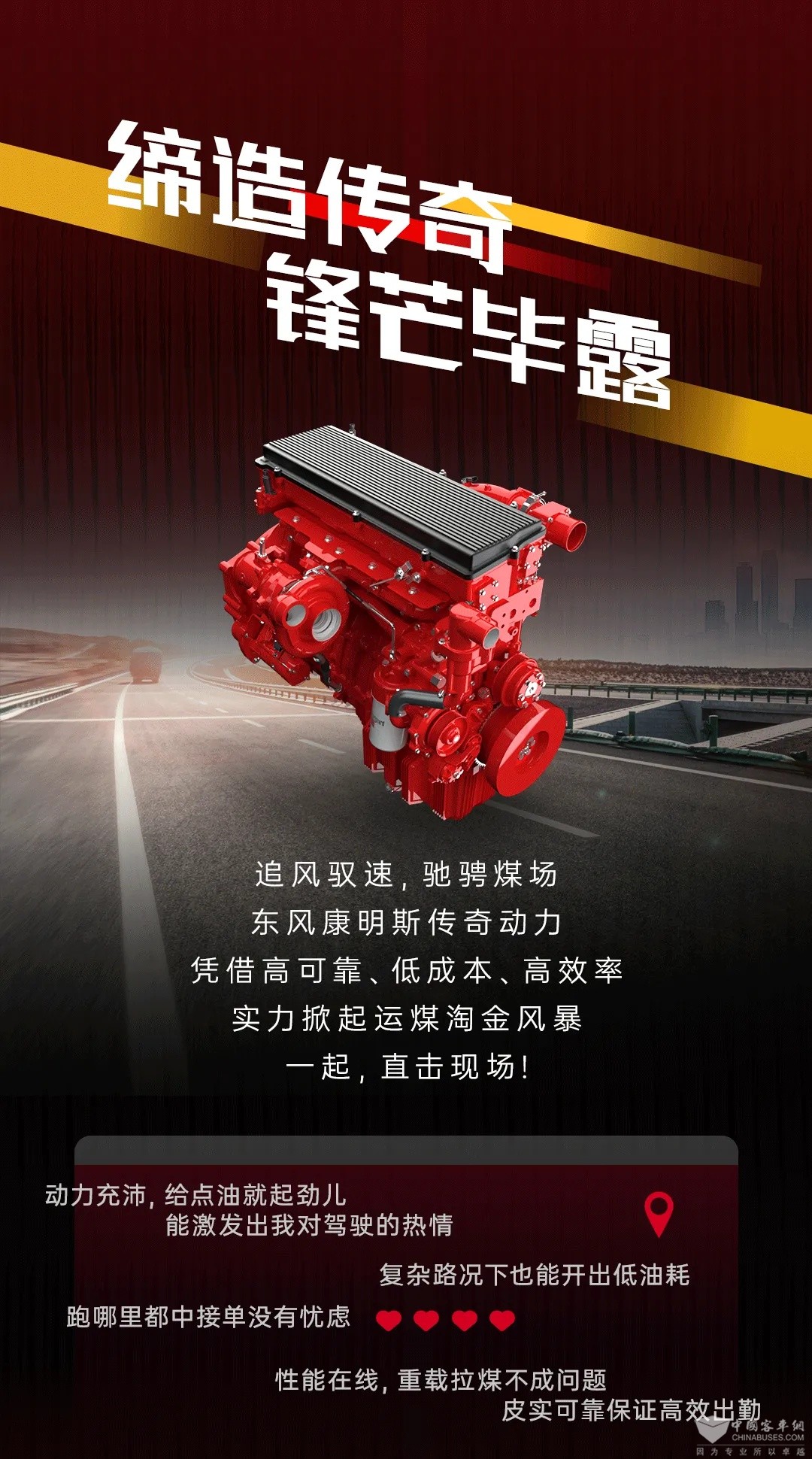 缔造传奇,锋芒毕露!东风康明斯传奇动力凭借高可靠、低成本、高效率,实力掀起运煤淘金风暴。