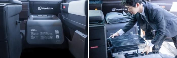 文远知行将安全放在最高优先级,GXR不仅在车辆行驶安全上做到全方位保障,在车辆内饰设计上也做到无微不至。车内无尖角和锐角设计,给予乘客宝宝级安全呵护。车内四门均贴有紧急离车标志,中央扶手箱内配有缓停按钮和破窗安全锤,便于乘客在紧急情况下快速取用,遇险脱困。