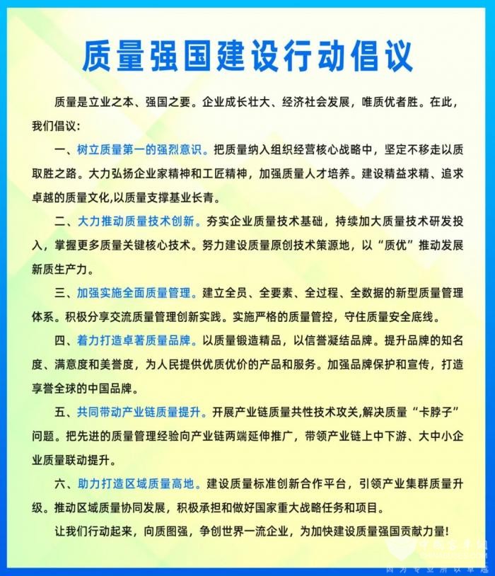 潍柴将以倡议内容为己任,勇担链主企业责任,共同带领产业链供应链质量变革创新,引领区域质量竞争力跃升;在全方位建设质量强国进程中担当先锋队和排头兵,为加快发展新质生产力、扎实推进高质量发展发挥引领带动作用。