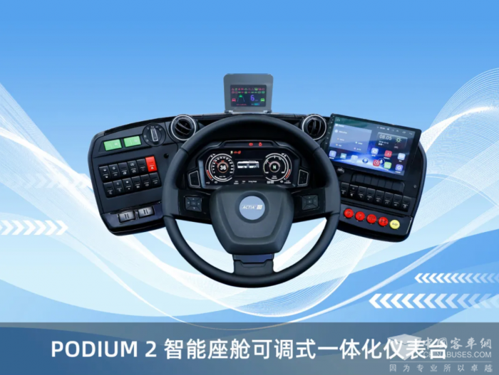 “数字座舱,未来已来”。欧科佳中国展台展出了搭载ACTIVI系统的PODUIM 2 数字座舱,成为本次展会的一大亮点。该系统凭借领先的创新性、集成性和用户体验,正在引领客车商用车数字座舱的未来发展。ACTIVI系统集高清触控显示、智能语音交互、个性化界面定制、高级驾驶辅助系统(ADAS)集成于一体,为乘客与驾驶员打造了一个前所未有的沉浸式交互空间。