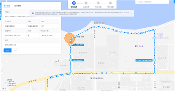 实现在线的线路绘制和调整、支持站点和场区复用和设置、支持自动化道路吸附、自动区分上下行,支持一键下发。