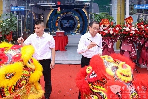 采埃孚售后乘用车事业线中国区销售负责人余涌(右)、北京鑫诚互通商贸有限公司总经理李文玉(左)参与体验中心开幕点睛仪式