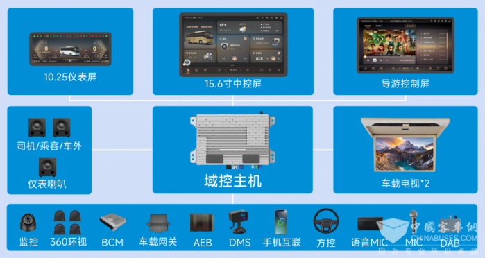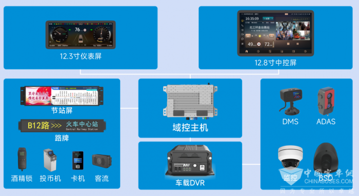 天迈科技自2014 年起布局商用车零部件开发生产,构建了以核心产品为支撑、技术创新为驱动的完善体系。明星产品商用车智能座舱以域控主机为核心,适配公交、公路旅游大巴等多场景需求,打造高效便捷的人机交互新体验,凭借实用创新和高可靠性能成为商用车配套领域的优质之选。